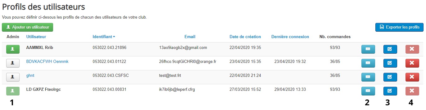 1 : Permet de désigner un administrateur ou de retirer les droits administrateur à un utilisateur