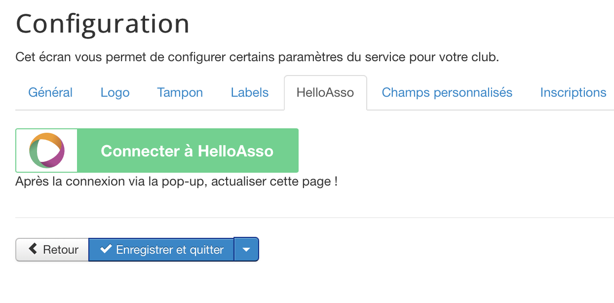 Pour cela, rendez-vous dans le menu configuration, au niveau de l'onglet HelloAsso, vous trouverez une option à activer :