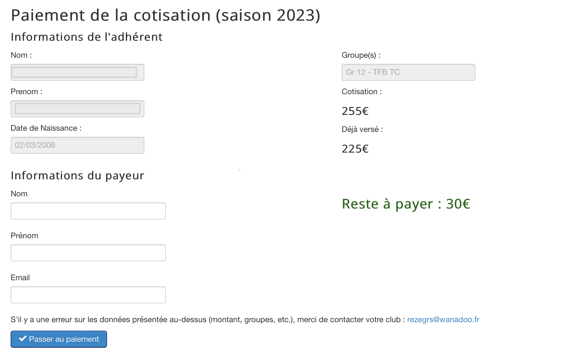 Le paiement de l'adhérent