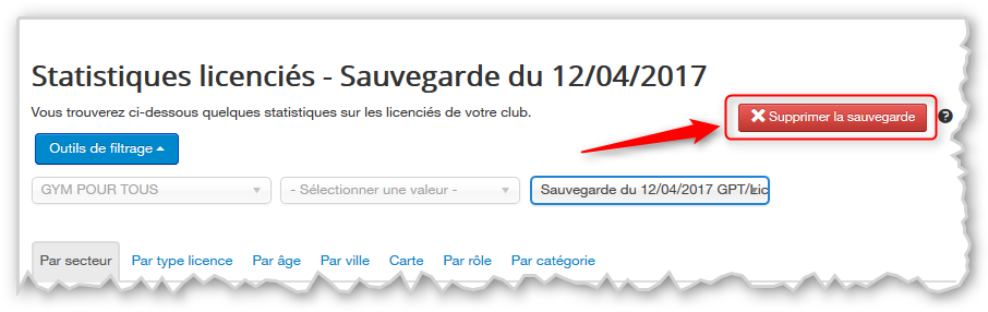 Il est aussi possible de sauvegarder un état courant afin de garder un historique. Cette fonctionnalité est importante car les statistiques d’une saison ne sont accessibles que pendant la saison en cours. Donc si vous voulez conserver les données de la saison précédente vous devez réaliser une sauvegarde avant la fin de la saison, soit fin août.
