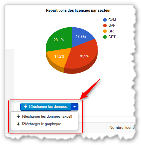 Pour chaque statistique il est possible de télécharger le graphique sous forme d’une image, le tableau des données au format Excel ou sous forme d’une image.